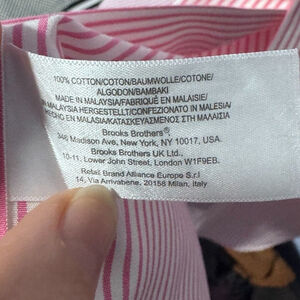 Upgrade your wardrobe with this classic Brooks Brothers Regent dress shirt in a striking red and white striped pattern. Made from comfortable cotton material, this button-down collar shirt is perfect for any formal or casual occasion. Available in size 17.5, this regular fit shirt is a must-have for any stylish man's collection.