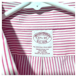 Brooks Brothers Regent Mens Red White Striped Dress Shirt Size 17.5 - 34 cotton