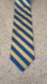 Elevate your style with this elegant blue and yellow striped tie. Perfect for any formal occasion. Made in USA, fabric woven in England.