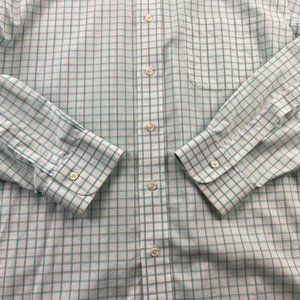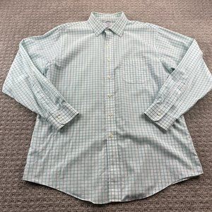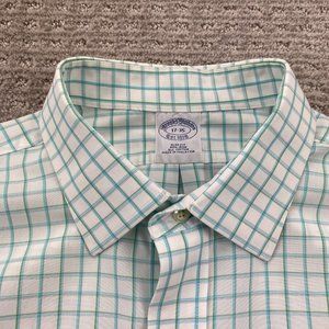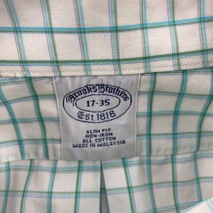 Brooks Brothers Slim Fit Shirt Men 17 - 35 White Green Checkered Polo Non-Iron
