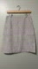 Excellent condition. Gray & white stripes. Lined. Back zipper closure with top button. Front functional pockets. Material has a pebble feel to it.