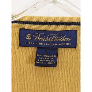 Brooks Brothers Sweater Extra Fine Italian Merino Wool Mens Large Yellow V Neck