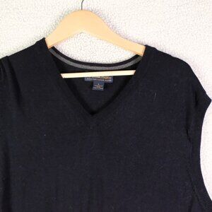 Brooks Brothers Sweater Vest Mens Large Navy Blue Merino Wool V Neck Lightweight