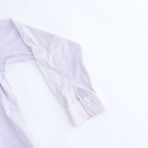Crafted from 100% high-quality cotton, this dress shirt offers exceptional comfort and breathability. The crisp white fabric is complemented by subtle lavender stripes, creating a refined and stylish look suitable for both formal and semi-formal occasions.