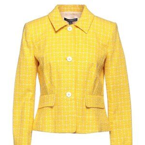 Brooks Brothers Yellow and White textured button up blazer with faux front pockets