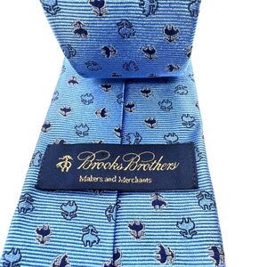 Get a touch of sophistication with this Brooks Brothers blue tie. Made for men, this accessory is perfect for completing a polished look. The classic design and high-quality material make it a versatile piece that can elevate any outfit, whether it's for a formal event or a professional setting. Add a pop of colour to your wardrobe with this stylish tie from Brooks Brothers.