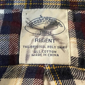 Brooks Brothers maroon white black men plaid button up long cuff sleeve shirts L