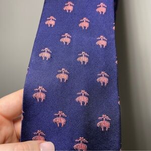 Brooks Brothers men's navy & pink 100% silk classic sheep logo career neck tie