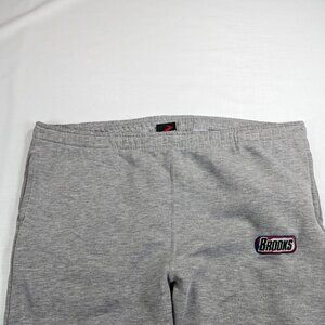Brooks Sweatpants Men's Medium Gray Pockets Drawstring Embroidered Fleece