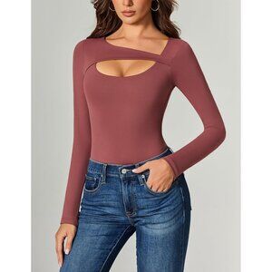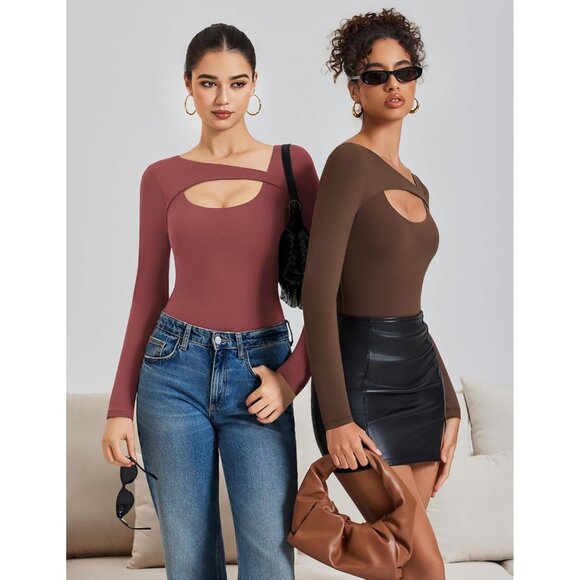 ⚡Brown Avidlove Long Sleeve Bodysuit for Women Scoop Neck Cutout Slim Leotard