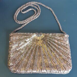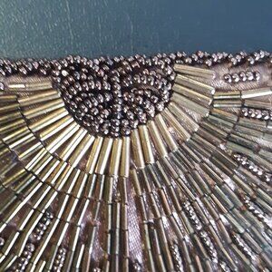 Brown Beaded Evening Shoulder Bag with Satin Lining 8.5"x5.5"