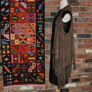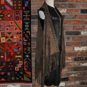 Brown Boho Faux Suede Laser Cut Hippie Fringe Vest Waistcoat Festival Unisex O/S