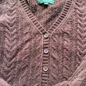 Cropped, cable knit cardigan from American Eagle. Very cute - dress up or down. Buttons at front, long sleeved. V-neck.