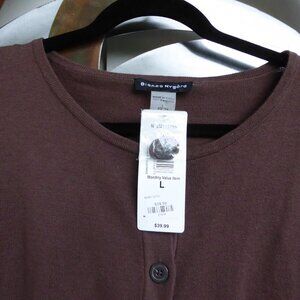 Brown Cardigan. 3/4 sleeve with gathered detail. Size Lg 60% Cotton/40% Acrylic. New with tags