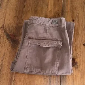 Taupe cargo pants with flap pockets. Straight leg cargo style. Clean, wearable color. Versatile and casual.