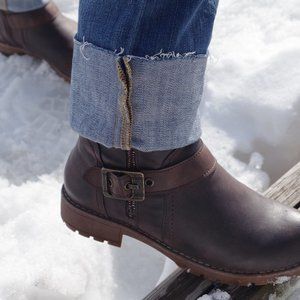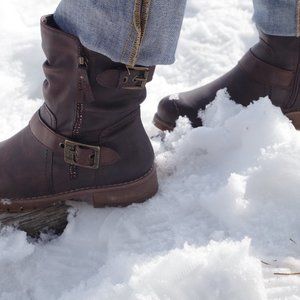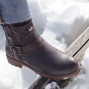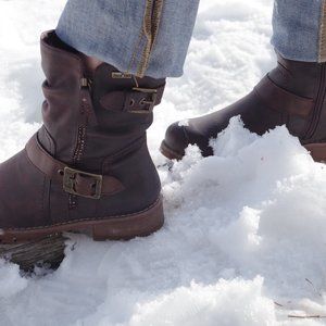 Great winter brown boots chunky ,with great grips for stability,buckle sides zipper closer,water resistant.size 8,Eure size 38.made in Cambodia.Detmold Germany.in good condition.