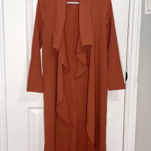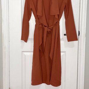 Colour looks more on the orange side in the picture. The trench coats true colour has more of a brown tone.