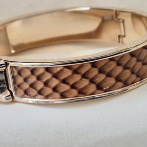Gorgeous bracelet with an H and faux brown animal texture. This is a high red style bracelet for easybwear. size in pictures. Elevate your style with this elegant brown and gold bracelet. Perfect for any occasion, this accessory adds a touch of sophistication to your look.