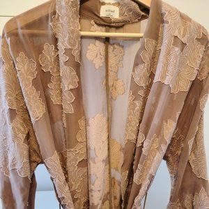 Elevate your style with this elegant brown floral kimono cardigan. Perfect for layering over any outfit.