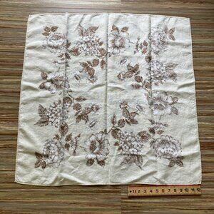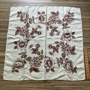 Brown Floral Tablecloth Beige Cotton Vintage 32" Square Neutral Table Linen