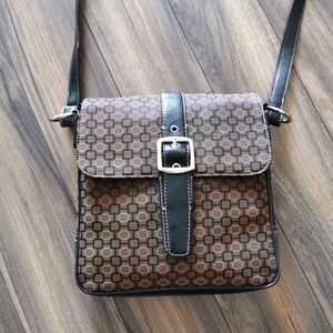 Brown GEOMETRIC printed canvas and leather messenger crossbody bag