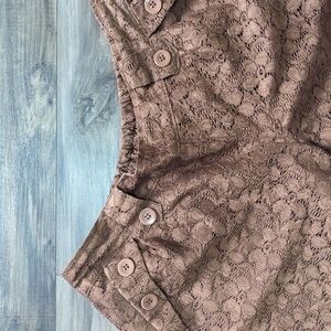 Stylish brown patterned lace women’s shorts perfect for casual outings. Comfortable and trendy design.