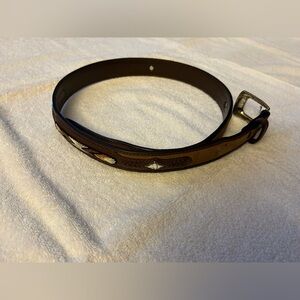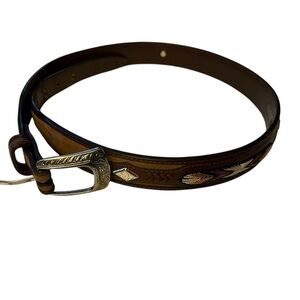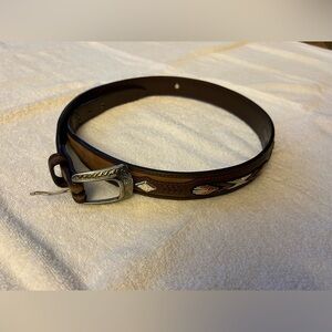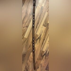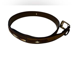 Brown Leather Belt with embroidery and fancy metal studs