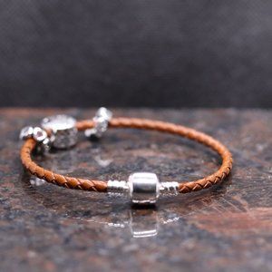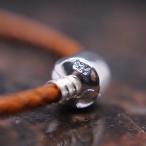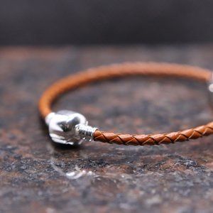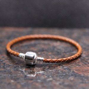 Brown Leather Bracelet with Sterling Silver Barrel Clasp - BRAND NEW