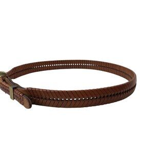 Brown Leather Braided Belt With Brass Coloured Hardware Size 36