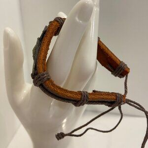 Brown Leather Christian Crucifix Bracelet With Adjustable Cord & Cross Char