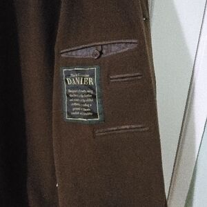 Stylish brown leather jacket with button closure. Perfect for a classic look.