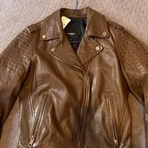 Brown Leather Jacket, Size Small, ROCKANDBLUE