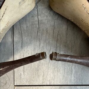 BOUTIQUE Stylish brown leather peep-toe heeled booties ankle strappy heels perfect for any occasion. These shoes offer a chic and modern look with leather straps to the ankle and a 4.5” heel. Still in good gently used condition gently used.