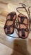 Step out in style with these elegant brown leather sandals. Very Grecian with the leather lace up straps. Perfect for any casual outing, these sandals offer both comfort and fashion. They are in good condition just too small for me. I usually wear a size 9-these would better fit an 8.5 or 8. Good quality leather.