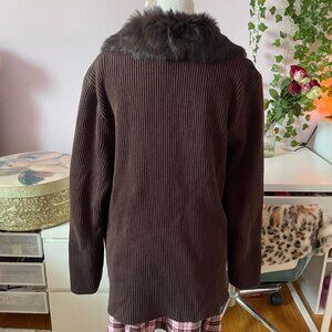 Brown Leather and Rabbit Fur Jacket