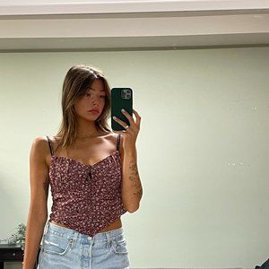Brown & Mauve Floral print tank with adjustable straps and ties in the front