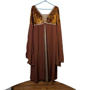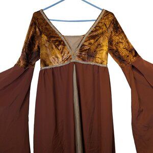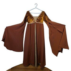 Brown Medieval style dress with wide flowing sleeves Size Medium