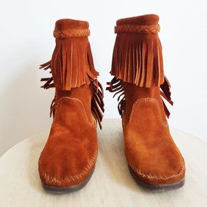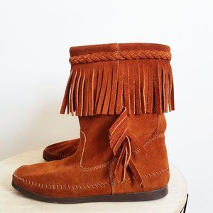 Brown Mid Height Suede Moccasins Women's Size 9, Handmade Indigenous Mukluks