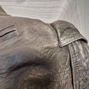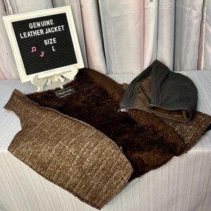 Brown Mid-thigh Customizable 3 Seasons Genuine Leather Jacket - Size L