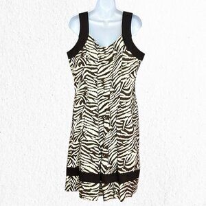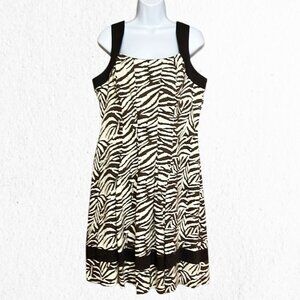 Brown Off White Animal Print Square Neckline Sleeveless Sundress Dress Size 14