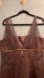Chic brown sleeveless dress with sheer straps. Perfect for formal occasions. A-line Pit to pit 18 50” hips Shoulder to hem 49