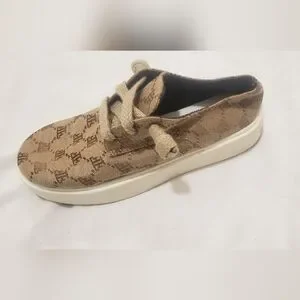 Stylish brown sneaker with a unique pattern. Comfortable and trendy design one shoe lost the other one .
