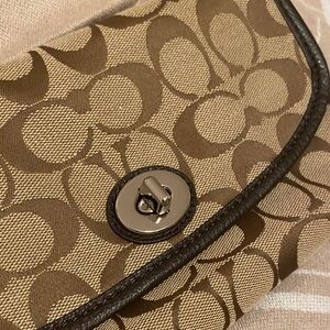 Stylish brown wristlet with a unique pattern, perfect for carrying essentials.