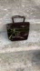 Unbranded. Quilted velvet. Satin lining. Adorable contrasting green bow. Zipper closure. One inner zippered pocket. Excellent condition- one small mark under the inner zipper.