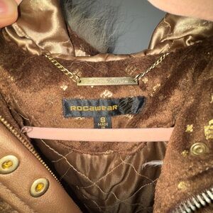 Rocawear Jacket. Features a unique pattern and gold accents.