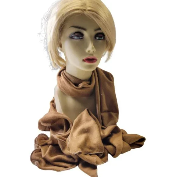 Brown Rectangualr Scarf with curly hemline