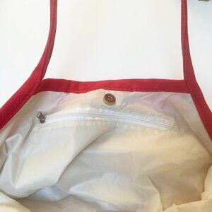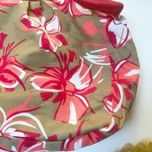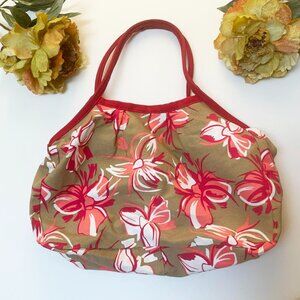 Brown Red and White Floral Cotton Fabric Tote Summer Bag