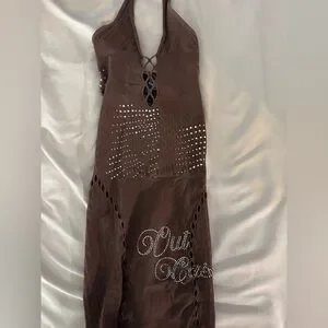 A Brown Rhinestone Nylon Mini Dress π from Outcast Clothing. This dress is extremely stretchy and accentuates the body to a TEA π€πΎ. It gives a perfect hourglass figure π and has NEVER been worn with tags still attached β