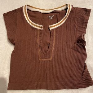 Brown Ribbed Crop Top