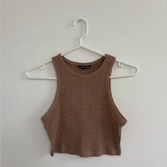 Elevate your style with this chic brown ribbed crop top. Perfect for casual outings or layering, this top offers both comfort and fashion.
